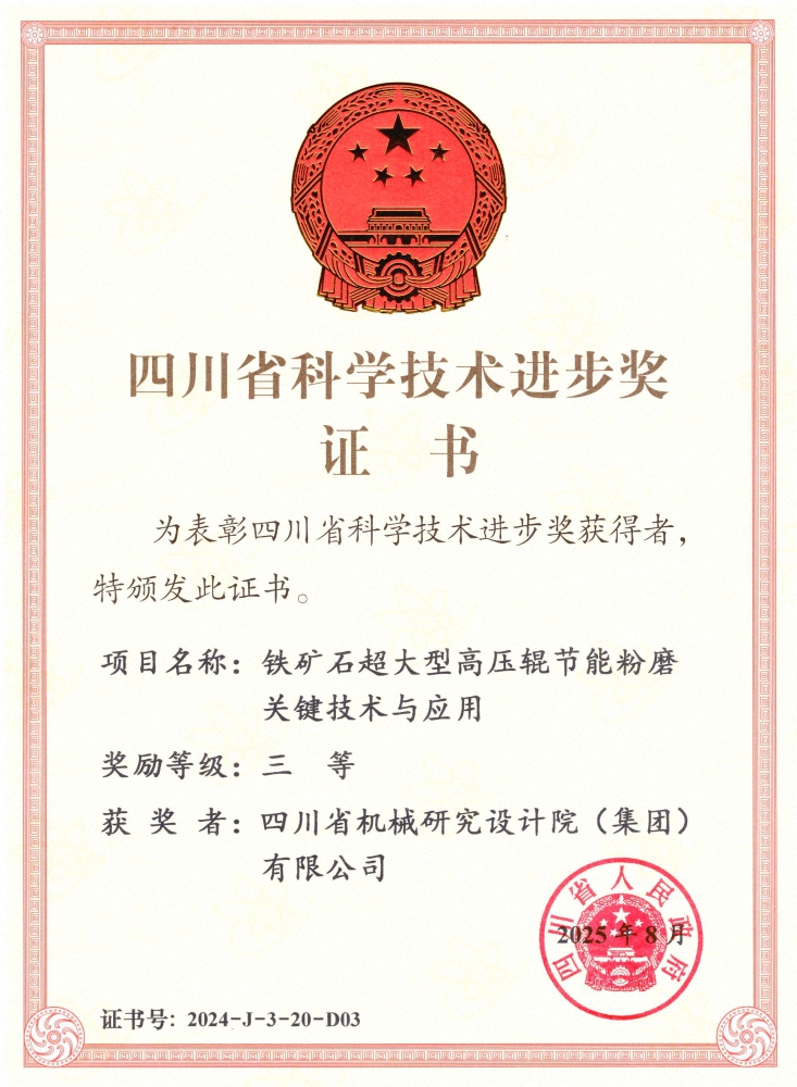 近日,2024年度四川省科學技術獎勵大會在成都舉行,川機集團參與的“電子裝聯(lián)關鍵精密件數智化制造技術及應用”項目和“鐵礦石超大型高壓輥節(jié)能粉磨關鍵技術與應用”項...